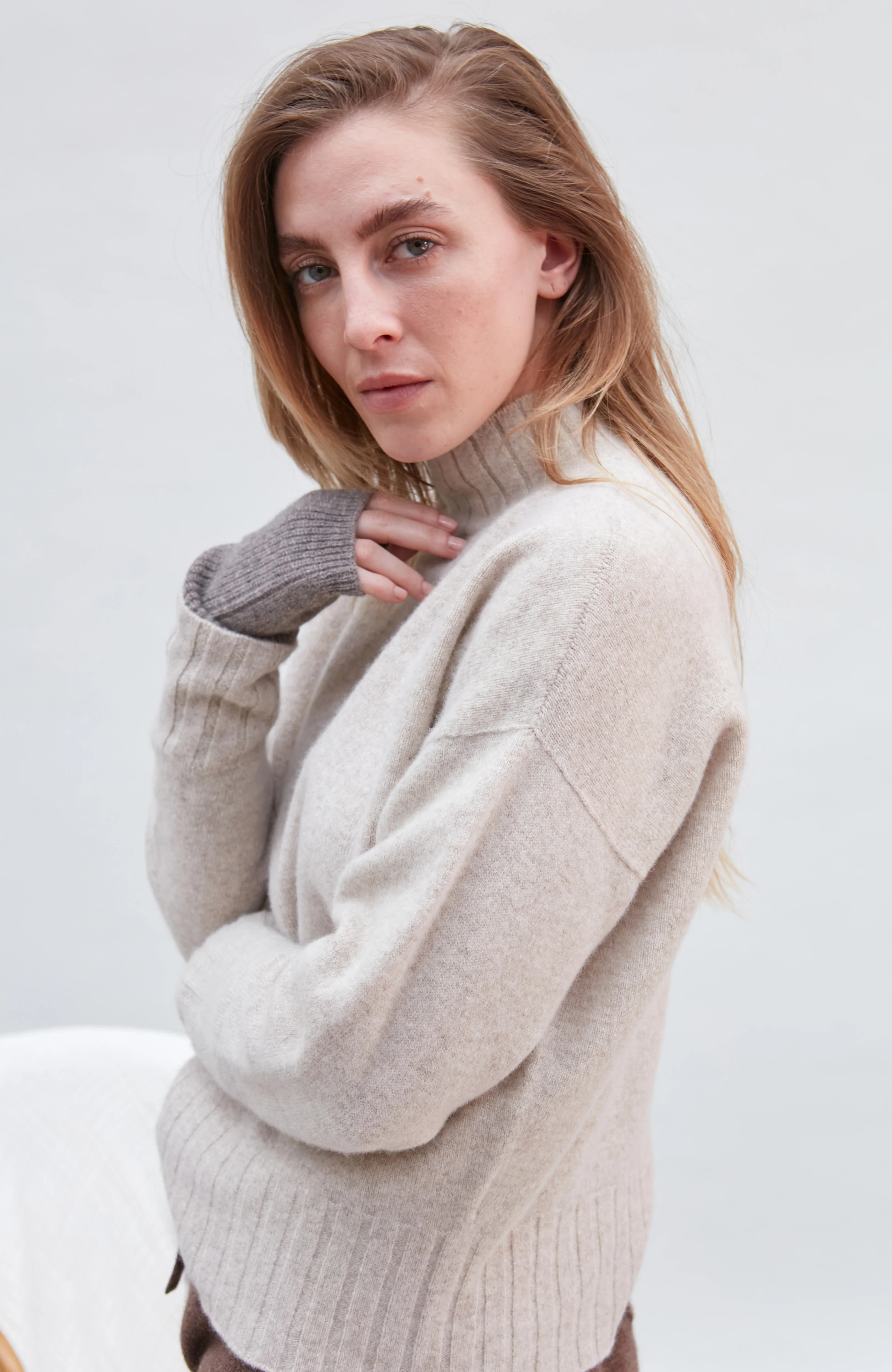 With a slightly cropped hem, the Lola lambswool sweater is incredibly flattering on both petite customers who require a shorter length and taller customers who wish to partner the cropped jumper with high waisted bottoms. The ribbed collar sits comfortably in the middle of the neck and thanks to the softness of British lambswool, will not irritate or cause overheating.